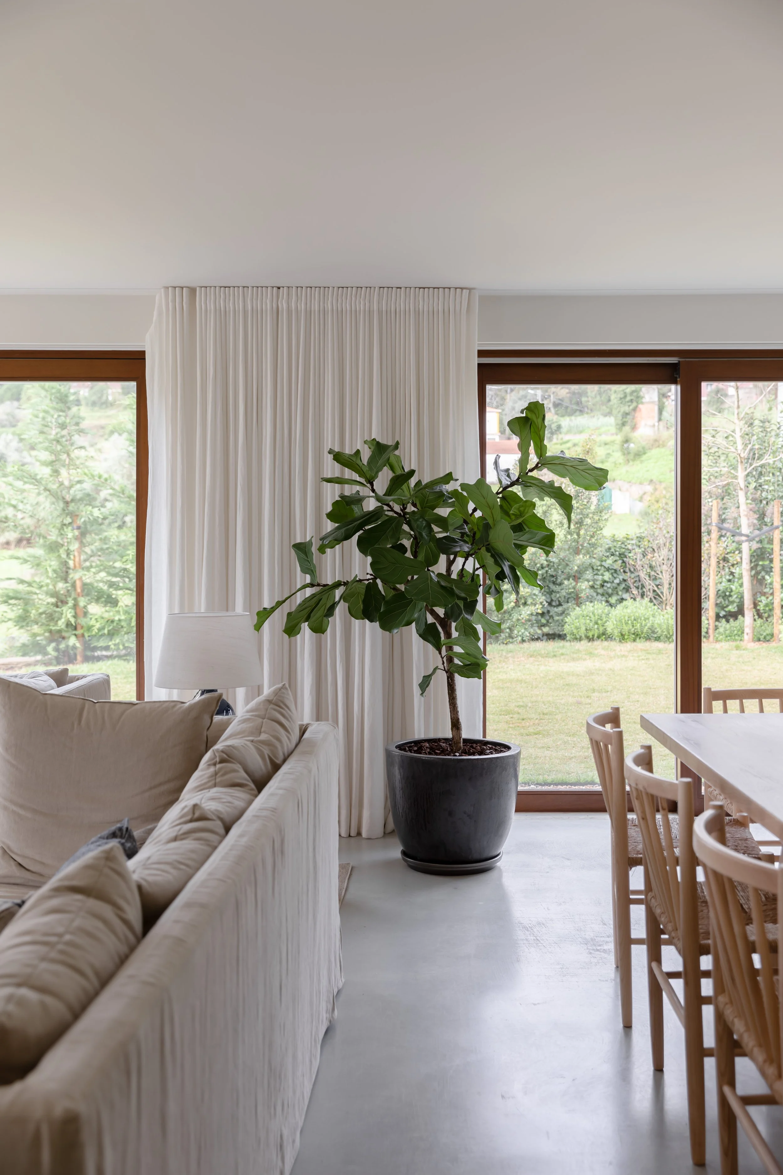 No interior, respira-se o conforto de um lar, mas o exterior serrano avistado pelas janelas, também é um protagonista ativo no decorrer dos dias. A arquitetura deste projeto é, então, pensada para fundir estas duas dimensões num só, criando uma casa onde se vive plena e profundamente a ambiguidade entre o recolhimento e a expansão.
